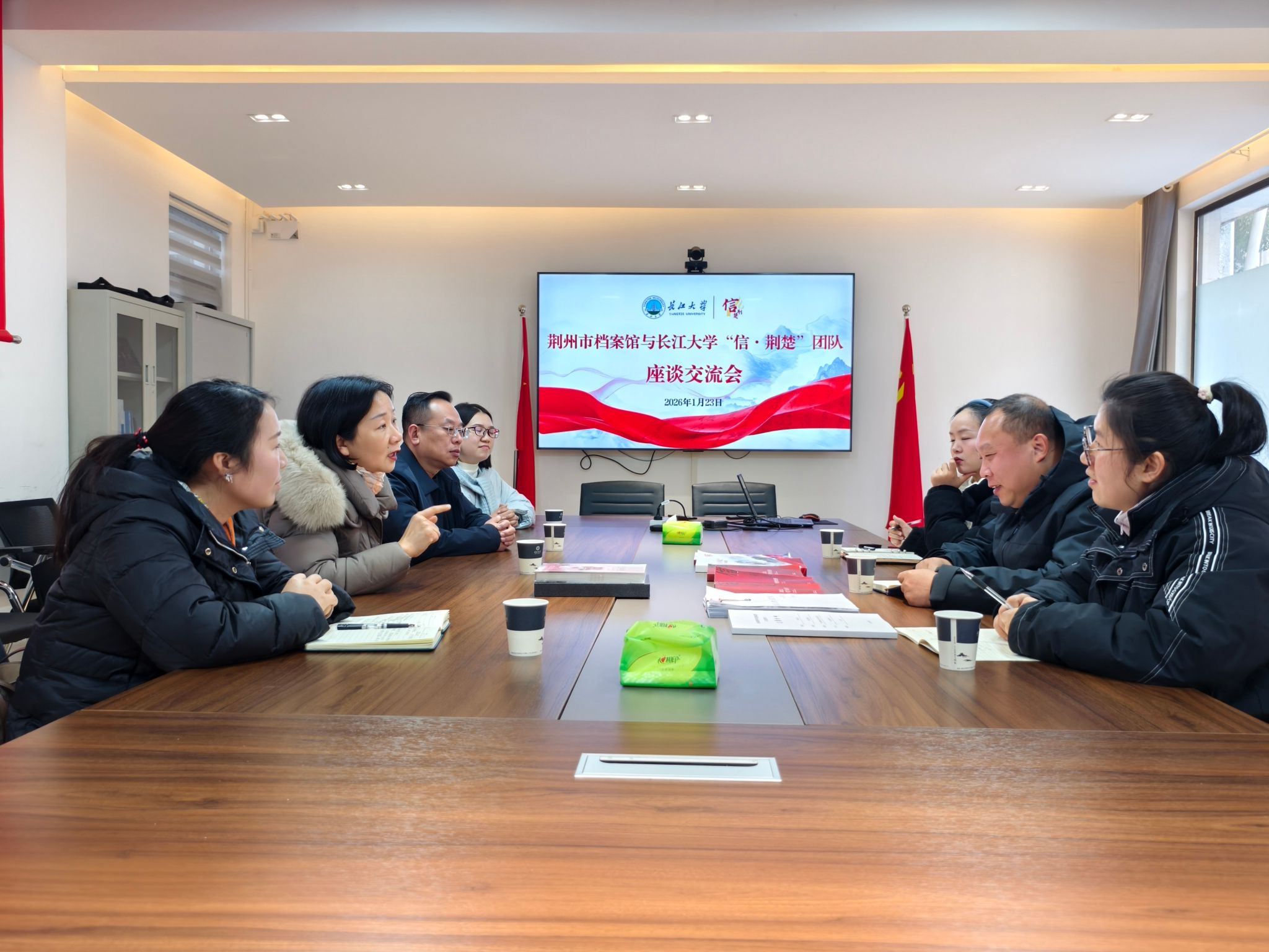 “这些档案不仅是历史的见证,更是宝贵的精神财富。”长江大学马克思主义学院党委书记、“信·荆楚”团队负责人刘小燕表示,“如何科学保护、系统整理并创新利用这些红色书信,一直是我们思考的重要课题。”双方就红色档案的保护传承与活化利用开展座谈交流,就资源共享、平台共建、实践共促等方面达成合作意向。