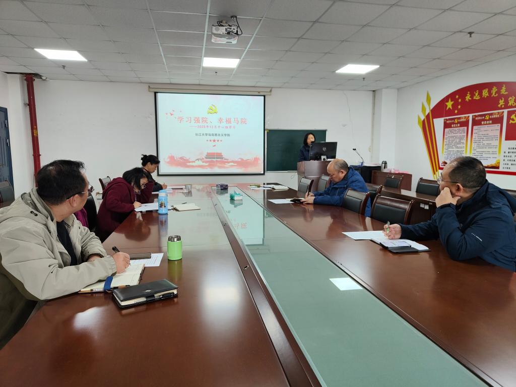 12月3日上午,马克思主义学院在文科楼1104室举行党委理论学习中心组2025年第十一次集体学习会。及时学习习近平总书记最新重要讲话精神、省委近期相关会议精神,重点学习研讨党的二十届四中全会精神。会议由院党委书记刘小燕主持。