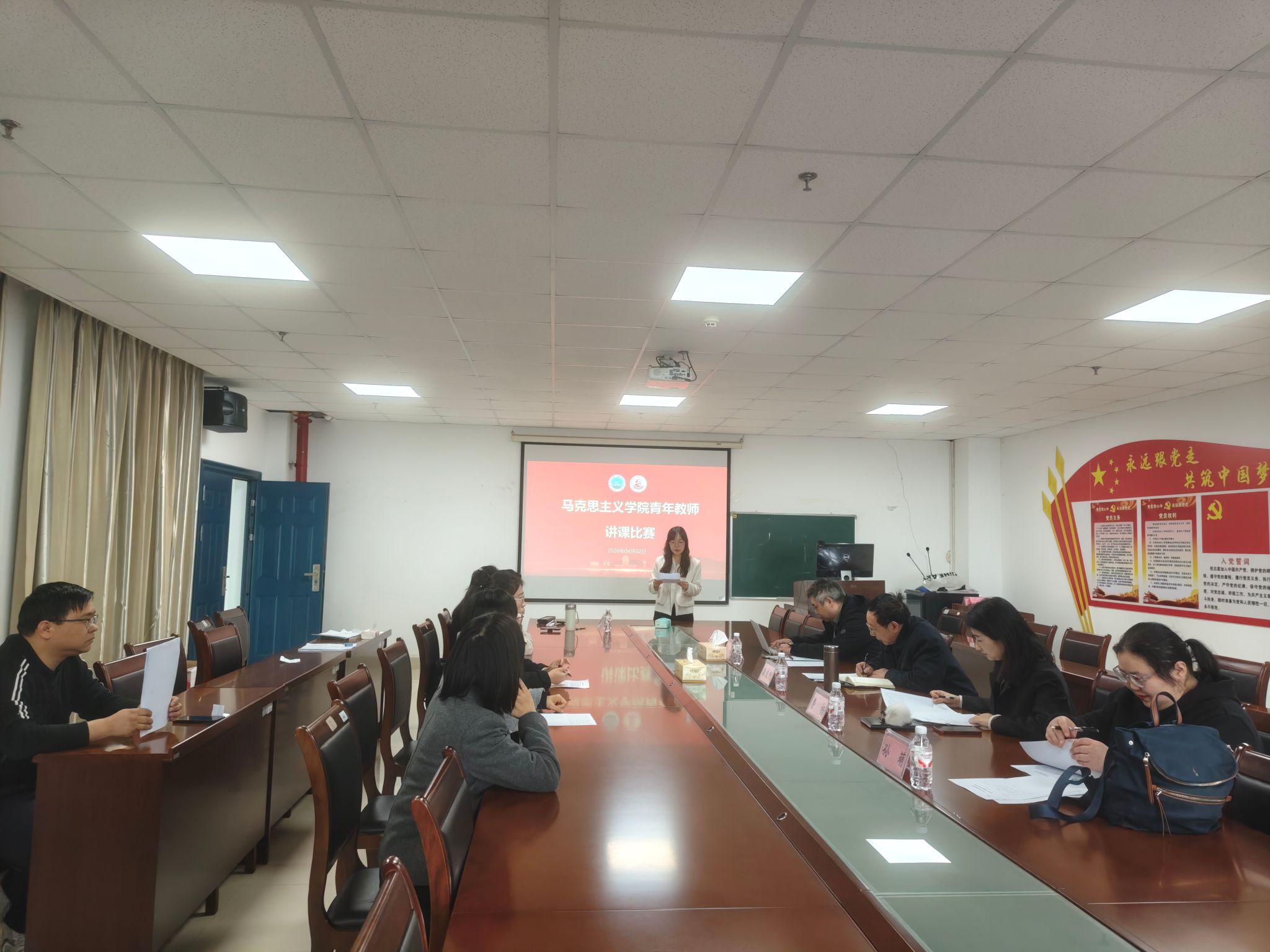 为深入贯彻落实学校青年教师教学竞赛工作要求,扎实夯实青年教师教学基本功,搭建高效的教学交流与能力提升平台,2026年4月2日,马克思主义学院在文科楼1104室成功举办2026年青年教师讲课比赛。此次竞赛以“以赛促教、以赛促学、以赛促改”为核心宗旨,为青年教师搭建了展示教学风采、分享教学心得、交流教育理念、相互学习共进的优质平台,助力青年教师提升专业素养与教学能力,加快成长步伐,进一步夯实学院教学质量根基。