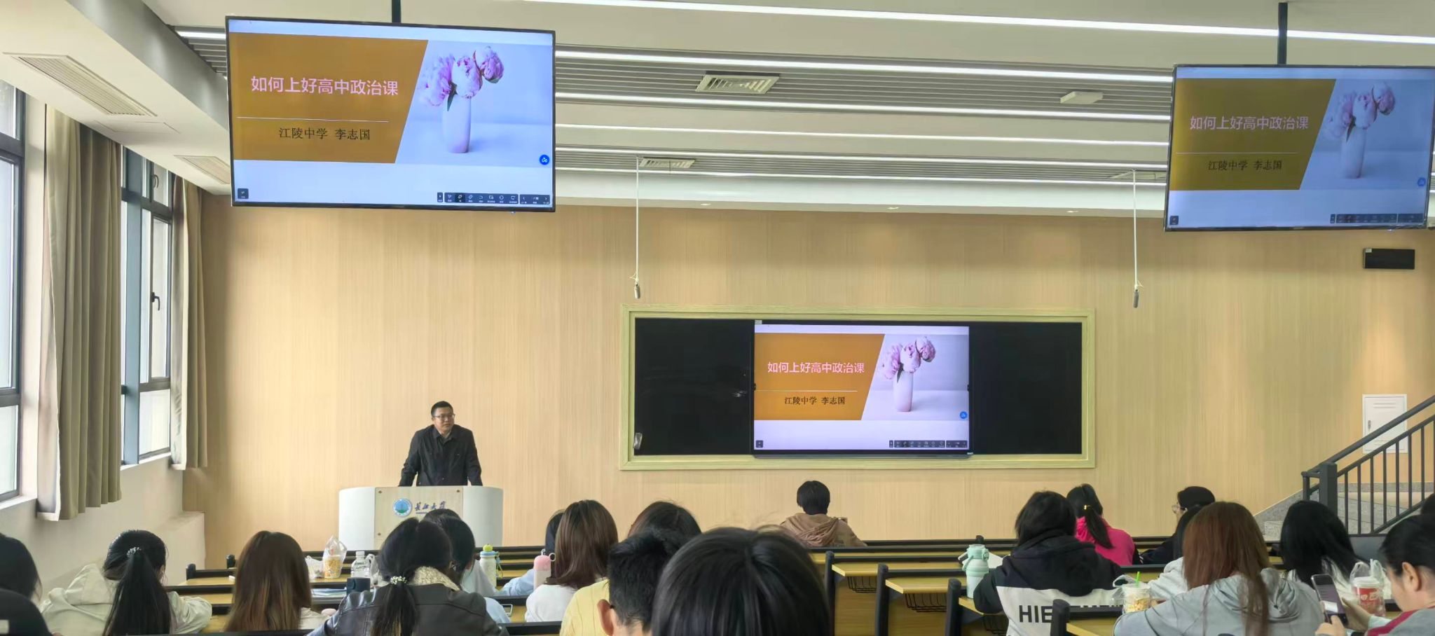 为助力思想政治教育专业学生夯实教学基本功、明晰从教方向,4月25日上午,长江大学马克思主义学院特邀江陵中学李志国老师,作《如何上好高中政治课》专题分享,学院师生到场聆听交流。