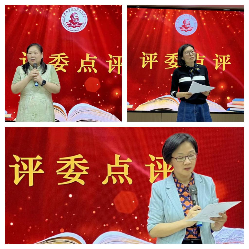 四月芳菲至,正是读书时。在第三十个世界读书日到来之际,为引导学生从阅读中汲取智慧,涵养精神力量,马克思主义学院于4月23日晚在文科楼1008室举办了“悦读经典 读善其身”读书报告会决赛。学院党委书记刘小燕、副书记汤慧珍、副院长张莉,教师代表黄晓云、郭辉以及学工办主任张云雾担任评委。